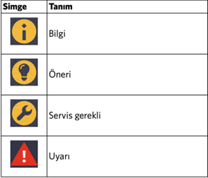 Yeşil / Mavi / Beyaz: Genellikle bilgilendirme amaçlıdır. Arıza anlamına gelmez.