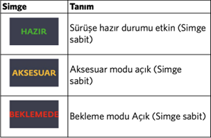 Ready göstergesi, bir arıza uyarısı değil, elektrikli aracın sürüşe hazır durumda olduğunu ifade eder. Elektrikli araçlar sessiz çalışabildiği için motor sesi duyulmasa bile araç her an hareket edebilir; bu nedenle özellikle park alanlarında, dar manevralarda ve yaya yoğun bölgelerde dikkatli olunmalıdır.
